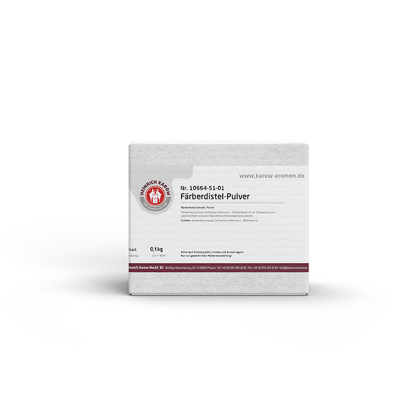 A food colouring as an alternative for clear jelly, ice cream, cream, mousses, fruit fillings and many other bakery and confectionery products - which does not need to be declared. Safflower powder is extracted from the petals of safflowers (Carthamus tinctorius L.) and applied to maltodextrin as the carrier material using spray drying. Very little needs to be used, it has a high level of colour brilliance and is light-stable.Features