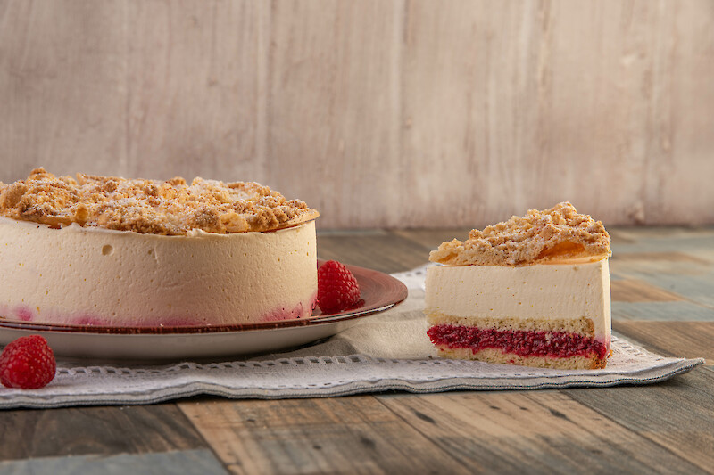 Einen dünnen Biskuitboden in ein Schnittenblech einlegen und die Himbeer-Vanillefüllung aufstreichen. Einen zweiten dünnen Biskuit auflegen und die Pfirsisch-Maracujasahne gleichmäßig darauf verteilen. Zuletzt den vorgeschnittenen Brandmasseboden auflegen und die Schnitte gut durchkühlen lassen.